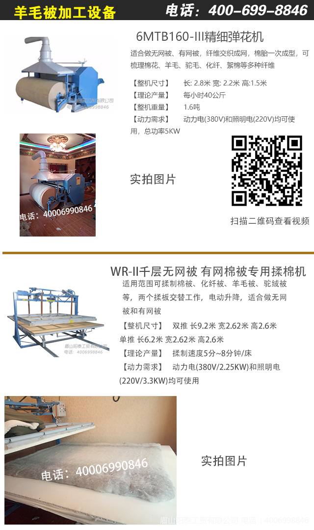 制作羊毛被,需要将经过前期处理的羊毛梳理、揉制、缝制,这就需要我们的机械设备了。