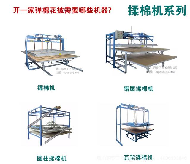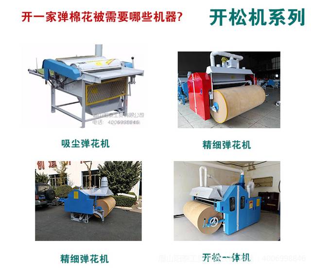 首先我们要了解做被子需要什么机器?客户拿棉花来加工,你首先要开松吧。开松这部分的机器就有小型吸尘弹花机,精细弹花机,开松梳理一体机。如果详细去讲解这些机器的原理,大可没必要。你只需了解小型吸尘弹花机,占地小,价格实惠,价格5000到一万元,一般为80公分宽和1米宽,可根据你的开松原料选择单辊还是双辊,主要是开松用。做被子时需要来回铺棉,做被子的时间稍长。