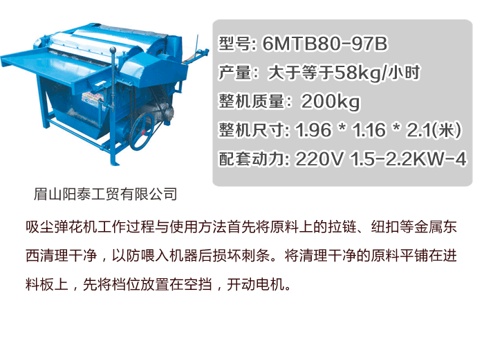 上一篇文章:小型眉三牌弹被子的机器 中国弹花机生产基地热销产品 下一篇文章:小型弹棉花机器市场占有率最高的一款弹花机!